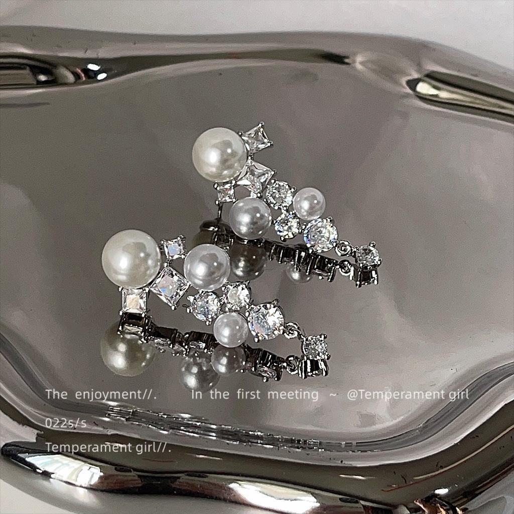 Starry | Real super flash size pearl tassel zircon earrings light luxury heavy industry temperament earrings