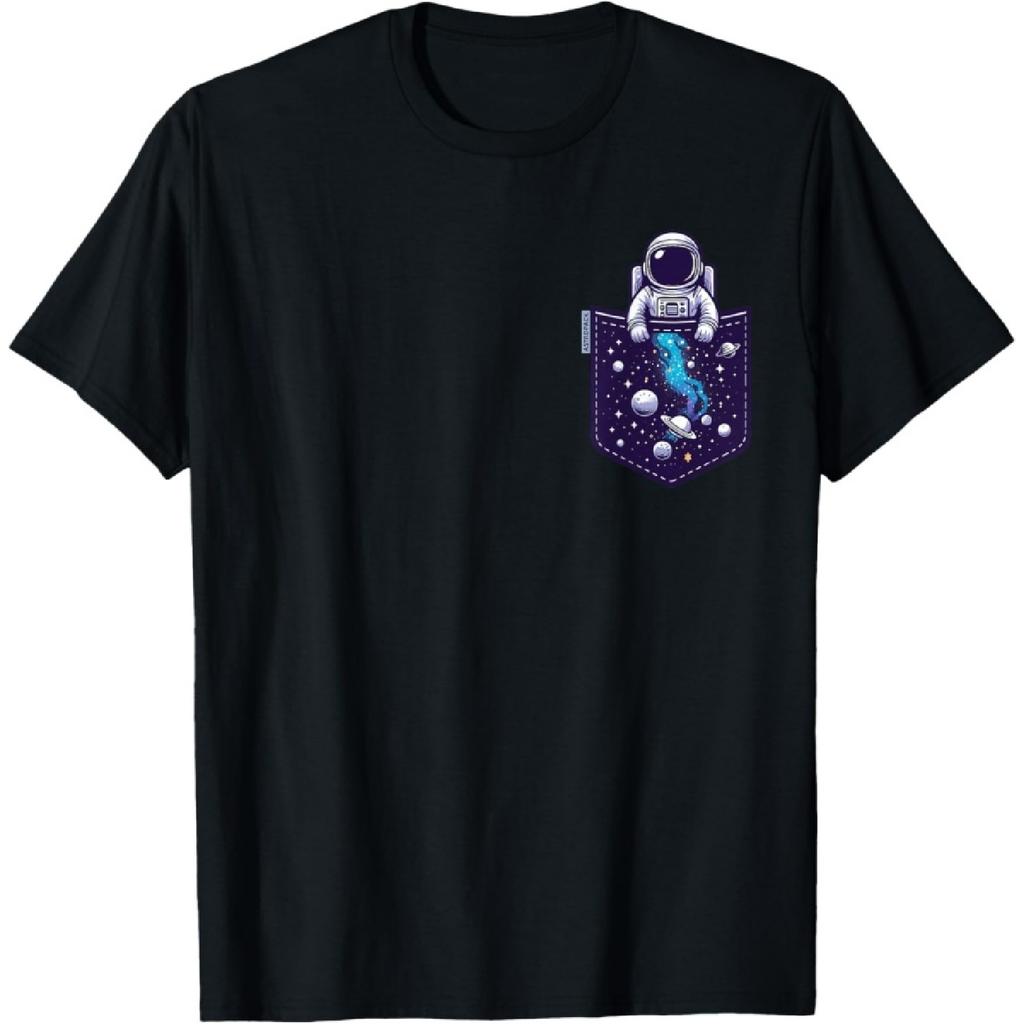 Camiseta Gráfica de Astronauta Espacial de Bolso