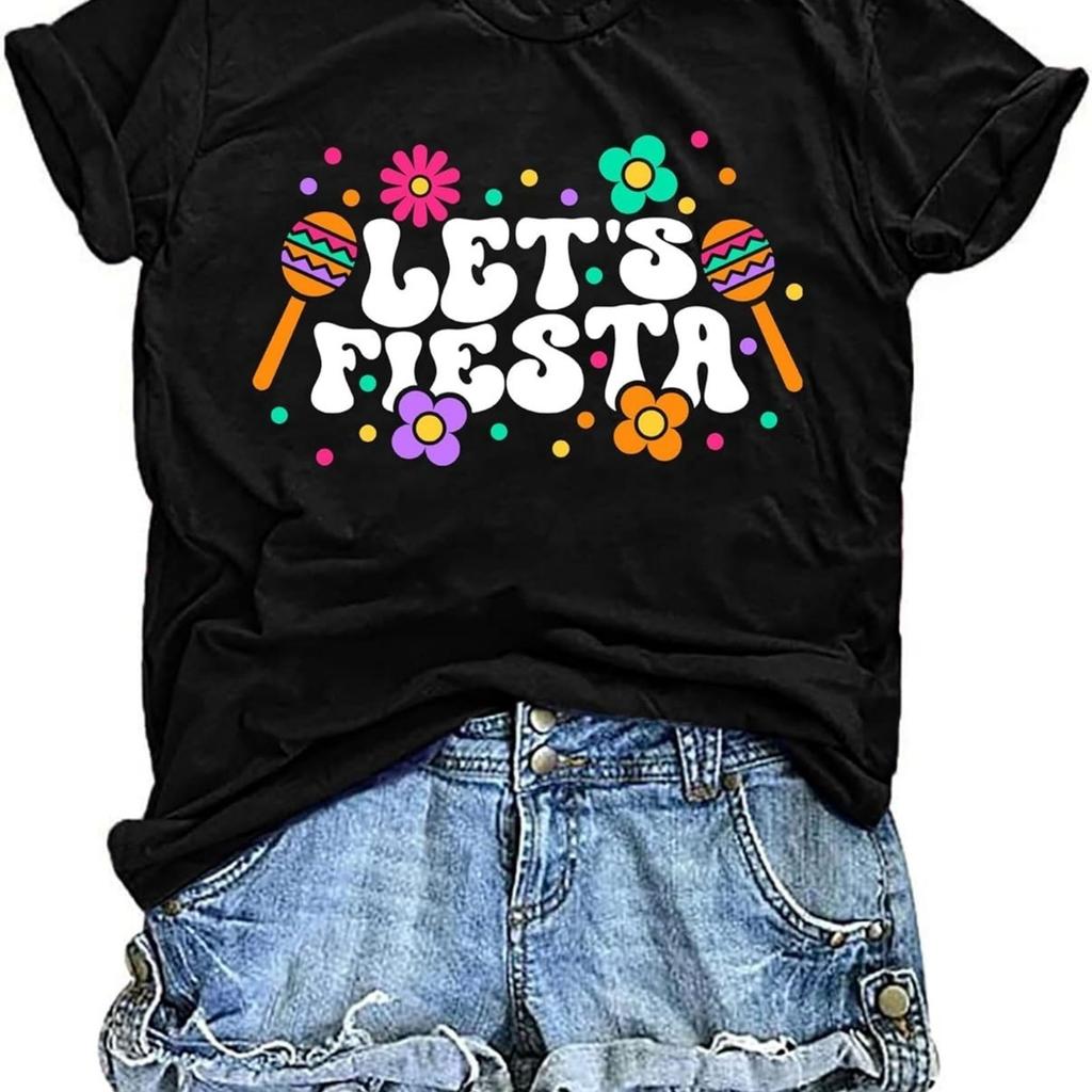 Cinco De Mayo Shirts Women Lets Fiesta T-Shirt Graphic Mexican Party Tee May 5th Casual Tops