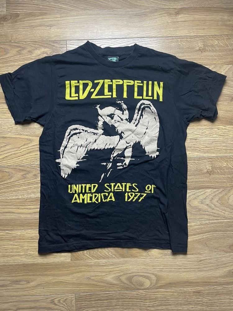 Camisa Preta de Manga Curta Unissex da Banda de Rock Led Zeppelin dos Anos 90 Tour KH15053 Camiseta Unissex