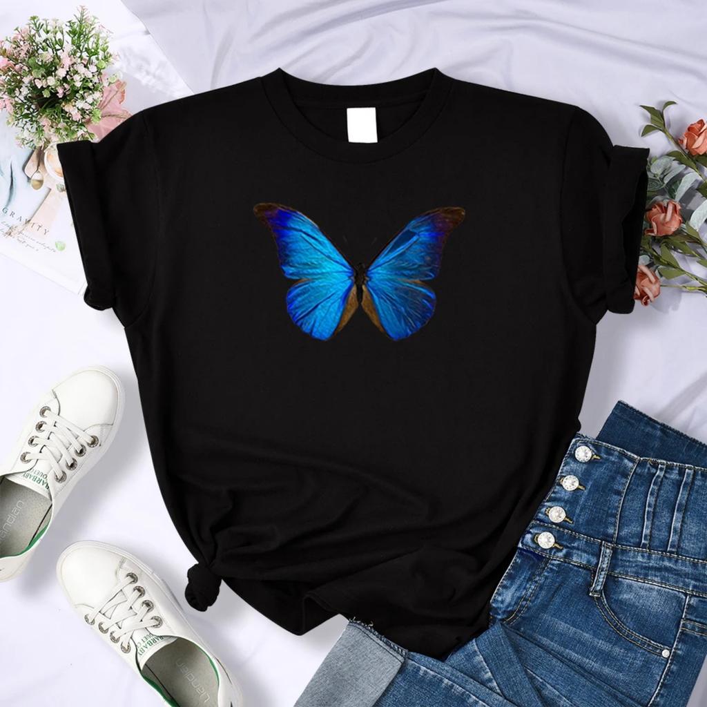 Azul borboleta rua moda t camisa das mulheres moda solta marca tshirt verão streetwear topos casuais roupas femininas oversize