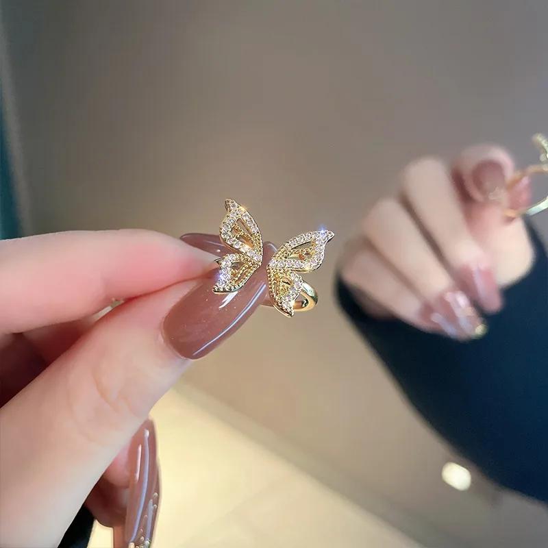 Individuality Zircon Golden Butterfly Open Ring Women's Classic Beautiful Fashion Daily Accessory Party Jewelry Birthday Gifts