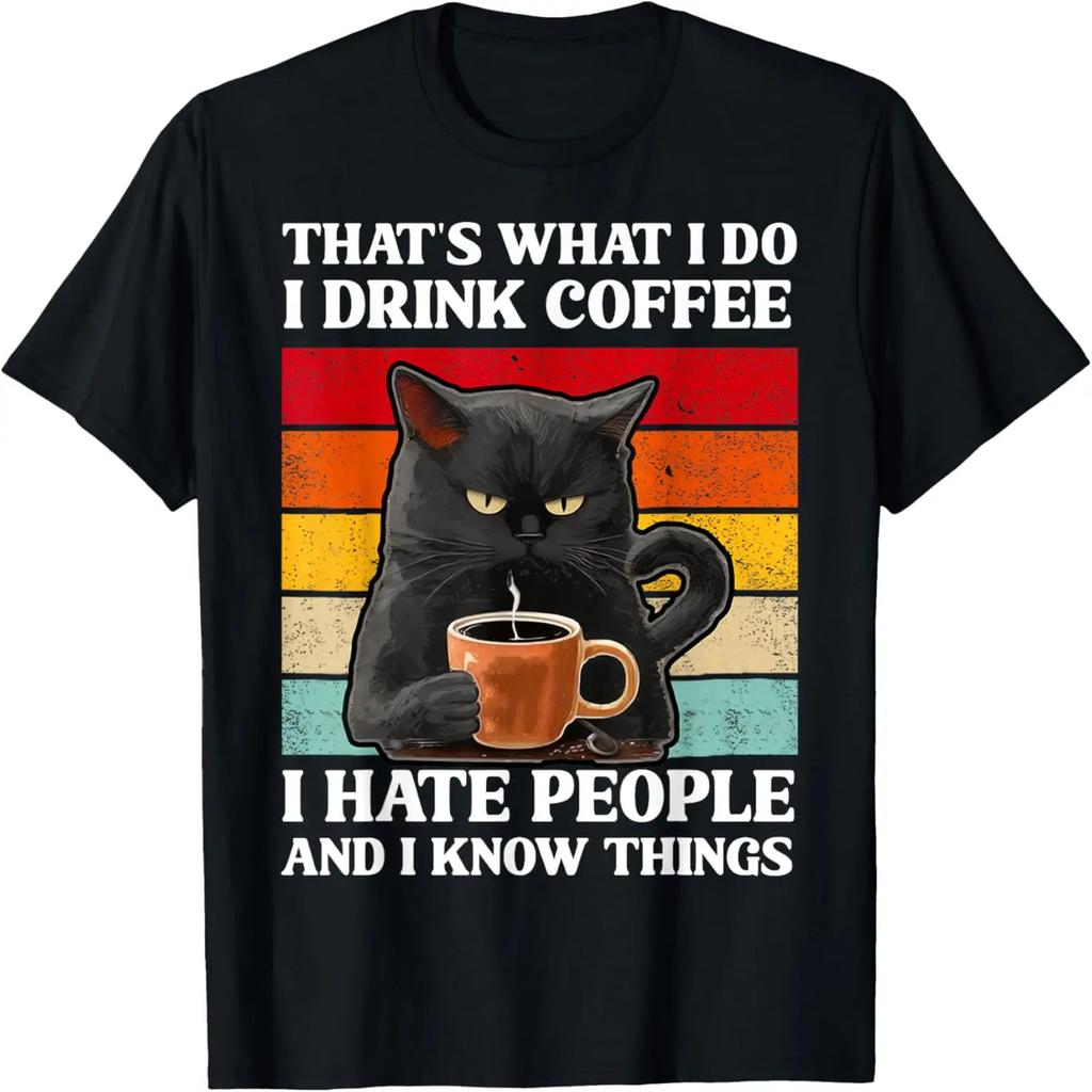 That's What I Do I Drink Coffee I Hate People Black Cat T-Shirt