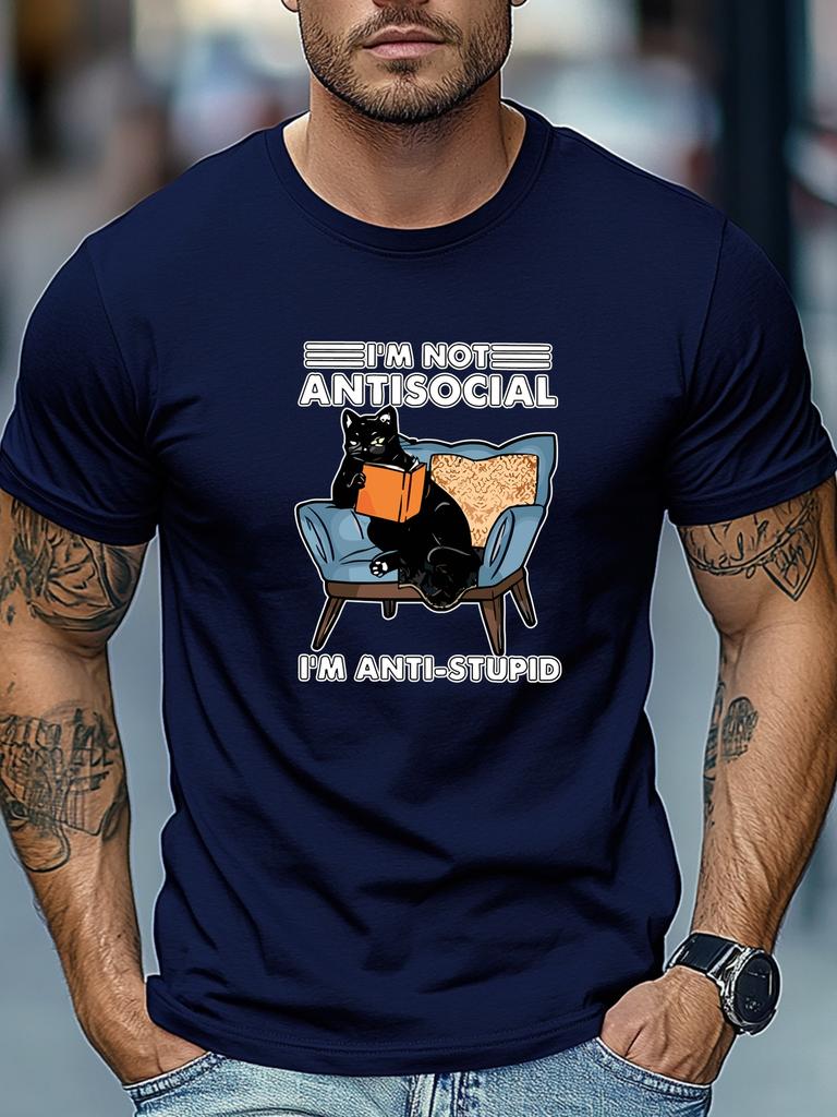Men Tshirt IM NOT ANTISOCIAL IM ANTISTUPID Graphic Summer Soft Comfort Fit Tee Daily Wear Tops