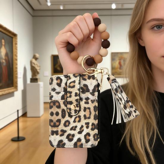 Sotaque boêmio estiloso: Apresentando uma pulseira delicada com contas combinada com elegantes detalhes de franja, este porta-cartões chaveiro adiciona um toque boho-chic único a qualquer look.. Serve tanto como um acessório funcional quanto como uma peça de destaque da moda.