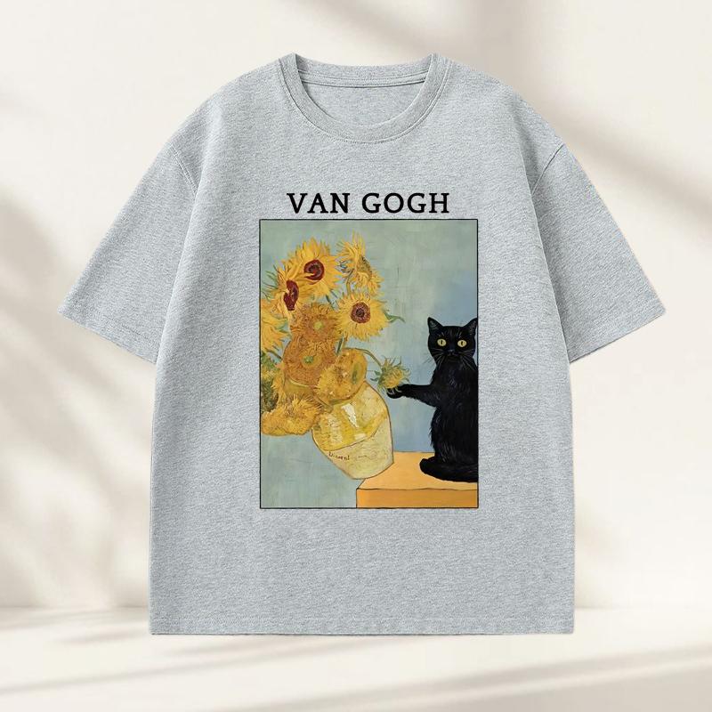 Van Gogh Sunflowers Print TShirt Men Women Vintage Harajuku Short Sleeve Tees Casual Round Neck Cotton Tee Shirt Clothes