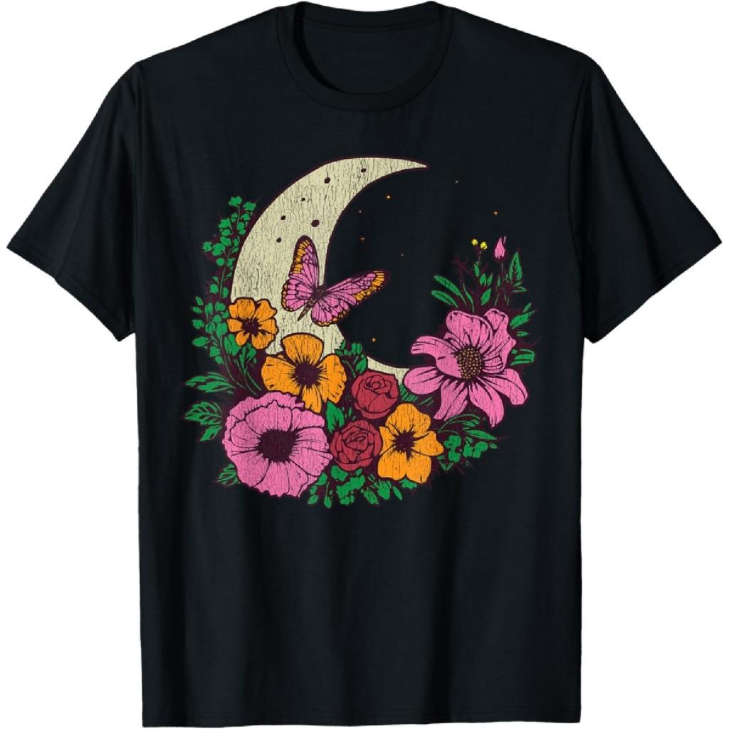 Trendy Butterfly Celestial Moon Flower Floral AI Art Print T-Shirt(1)