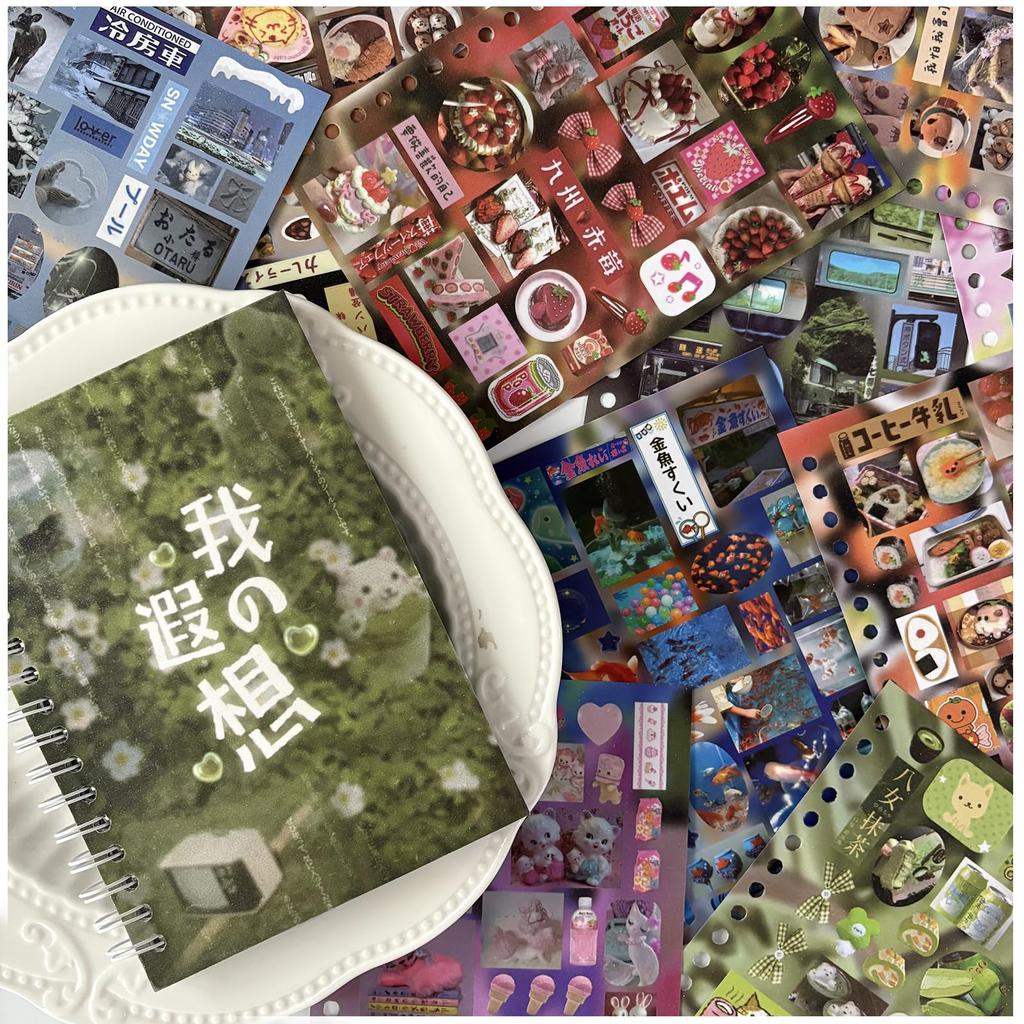 Colagem de Adesivos Frekyar Grande Capacidade Planejador Fofo Colagem Fofa Estilosa Materiais da Era Showa Vintage, Flocos, Sortimento, Decoração, Caderno, Conjunto,