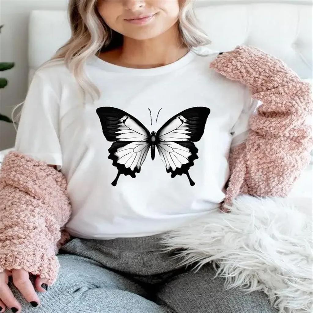 Women Clothing Butterfly Lovely Letter 90s Casual Tee Summer Short Sleeve T Female Fashion Printed Clothes Graphic T-shirts