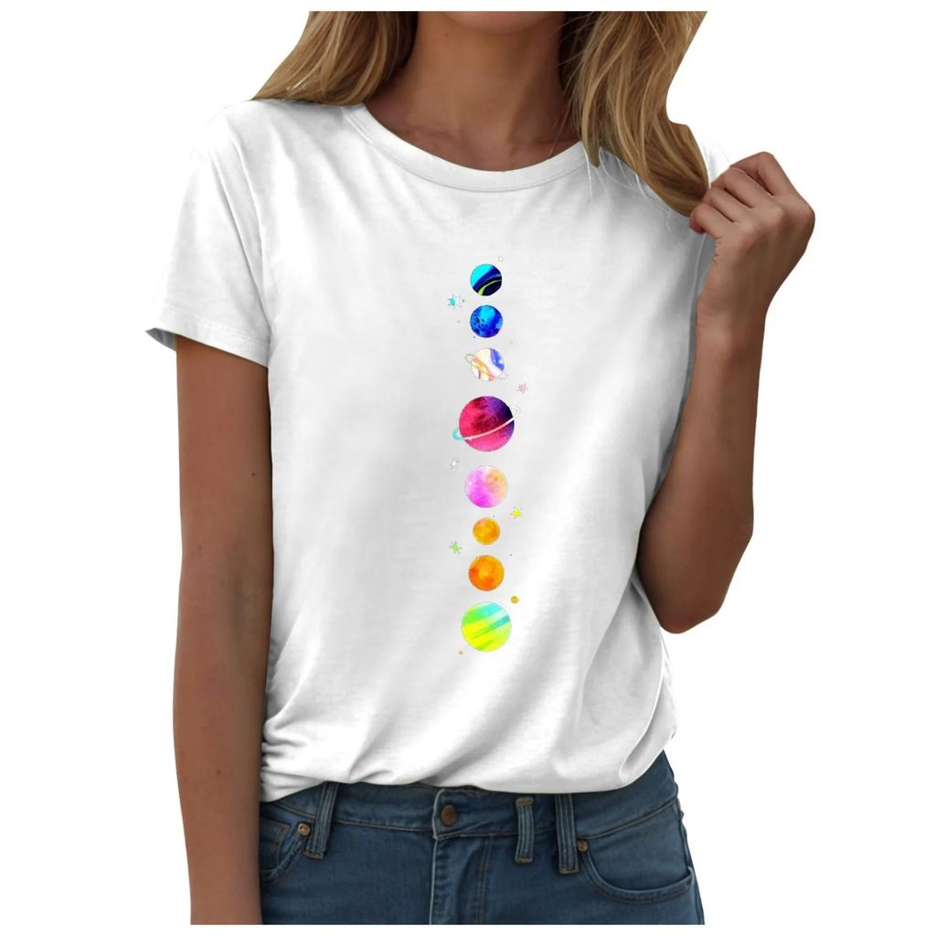 Women Fashion Daily Printed Round Neck Short Sleeved T Shirt Solid Color Casual Loose Graphic Printed Short Sleeved Tops