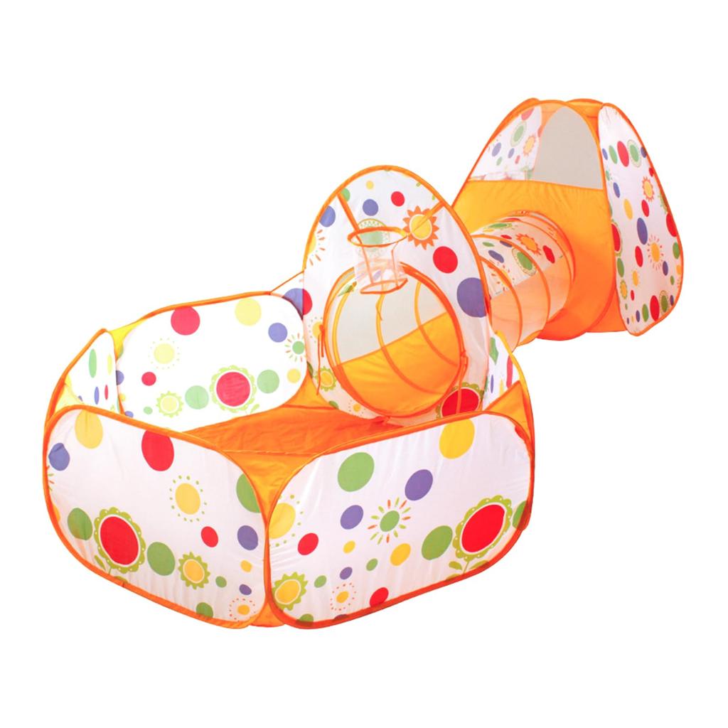 Tenda 3 em 1 para Crianças com Túnel e Piscina de Bolinhas com Cesta de Rede, Dobrável, Fácil de Montar, Base Secreta, Bolsa de Armazenamento Incluída, Adequada para Interior e Exterior