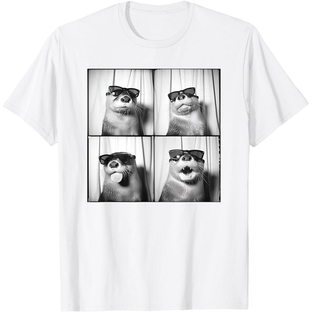 Camisetas Gráficas Engraçadas de Lontra com Óculos de Sol para Homens Mulheres Algodão Puro Humor Streetwear Camiseta Manga Curta Unissex Roupa Solta