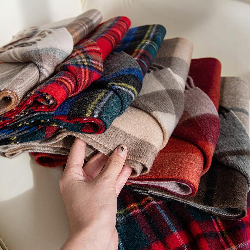 New Year Wool Scarf Plaid Women's Autumn and Winter Versatile Shawl Student Plaid Simple Warm Scarf Cashmere Feel
