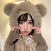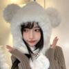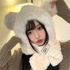Orelhas de Urso Outono e Inverno Chapéu Lei Feng Feminino Chapéu de Pelúcia Cachecol Integrado Chapéu Pulôver Quente Conjunto Fofo Versátil de Duas Peças