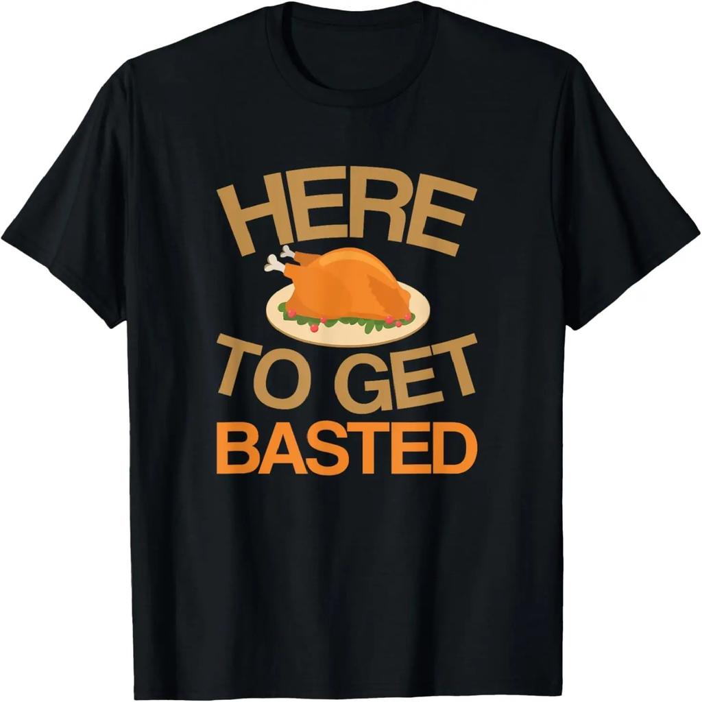 Here To Get Basted Wasted Drunk At Thanksgiving Dinner Funny T-Shirt