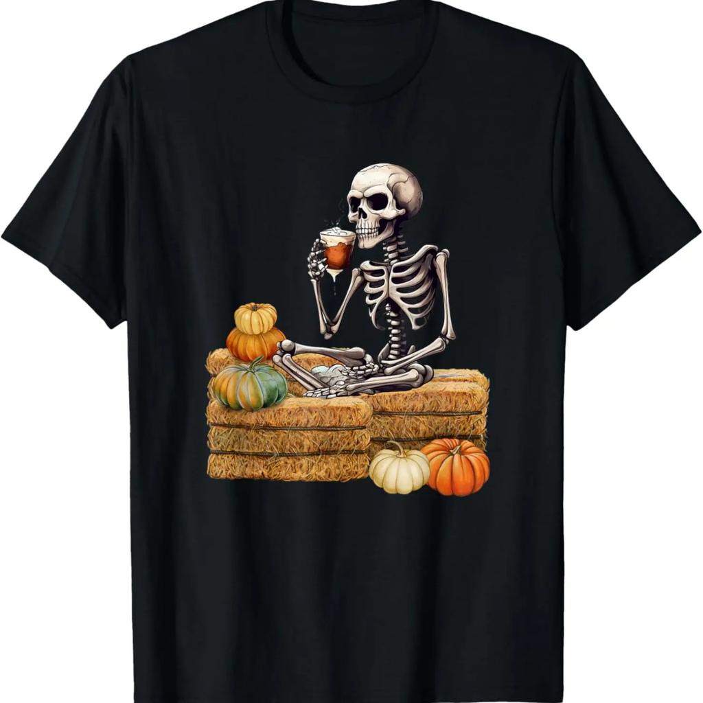 Skeleton Drinking Coffee T-Shirt,100% cotton