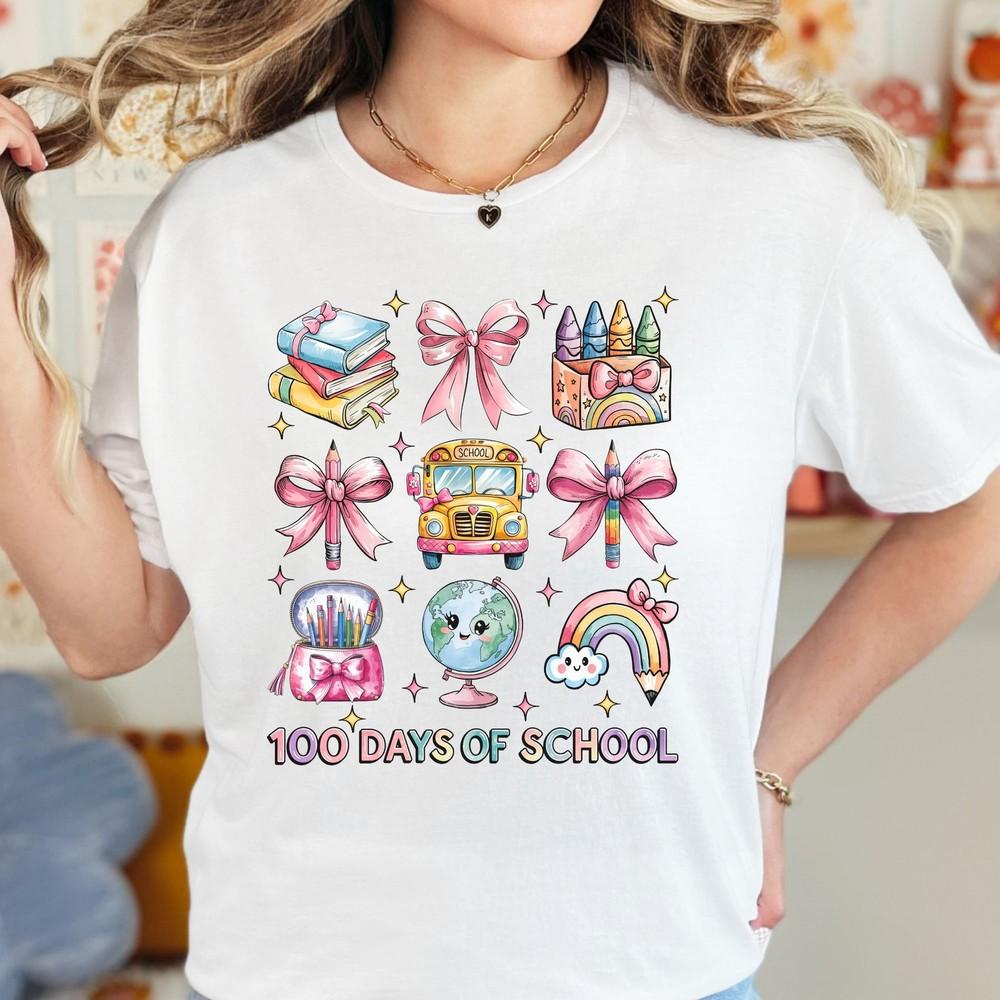 100 Days of School Teacher T-Shirt, School Teacher Gift, Coquette Shirt Unisex T-Shirt