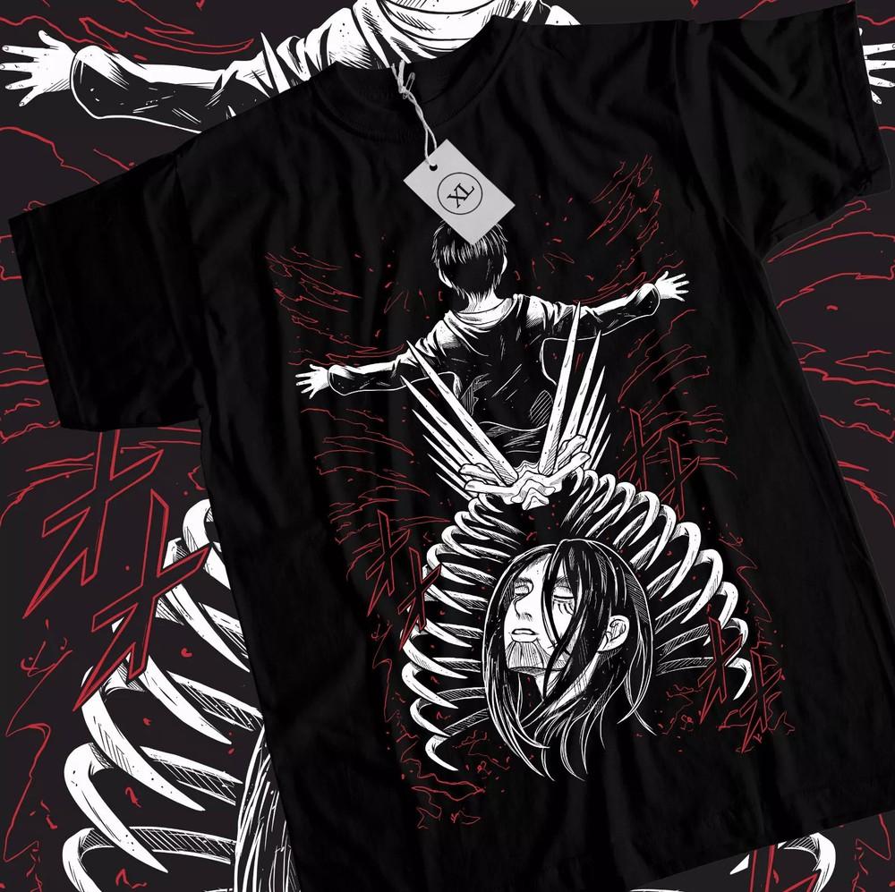 Eren Yeager Aot T-shirt,Anime,<wbr/>Attack On Titan,Graphic Tee,black Shirt Black Unisex T-Shirt