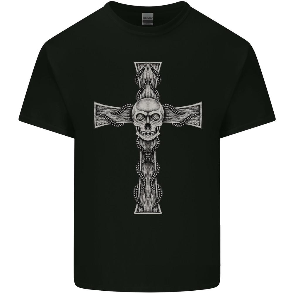 A Gothic Skull and Tentacles on a Cross Mens Light Cotton T-Shirt Unisex T-Shirt