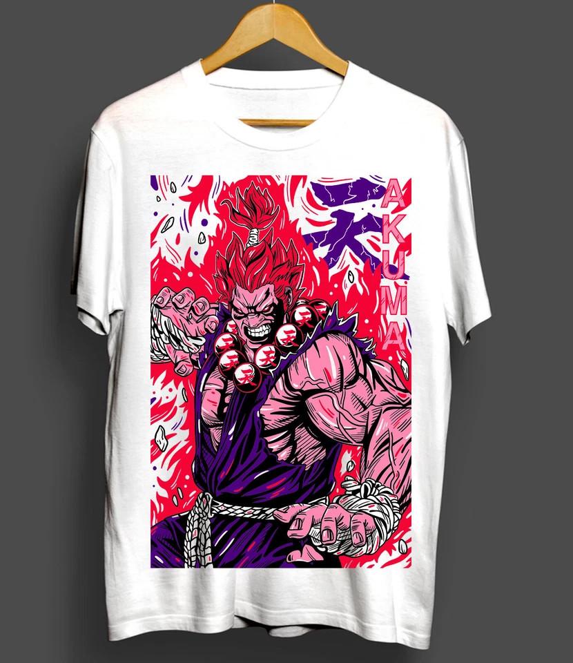 Camiseta Akuma Gouki Karatê Street Fighter Videogames Camisa de Luta Camiseta Branca Unissex
