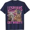 Lesbians Eat What Funny Cat Gay Pride LGBTQ Pun Bootleg TShirt Clothing Graphic Short Sleeve Shirt Men Women AllSeason