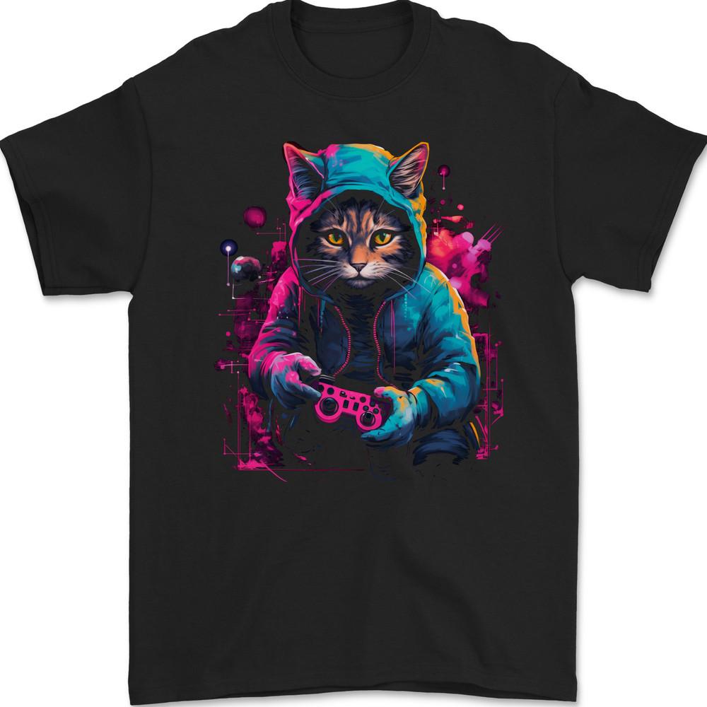 Gato Gamer Legal Jogador Videogames Camiseta Masculina de Algodão Gildan Camiseta Unissex