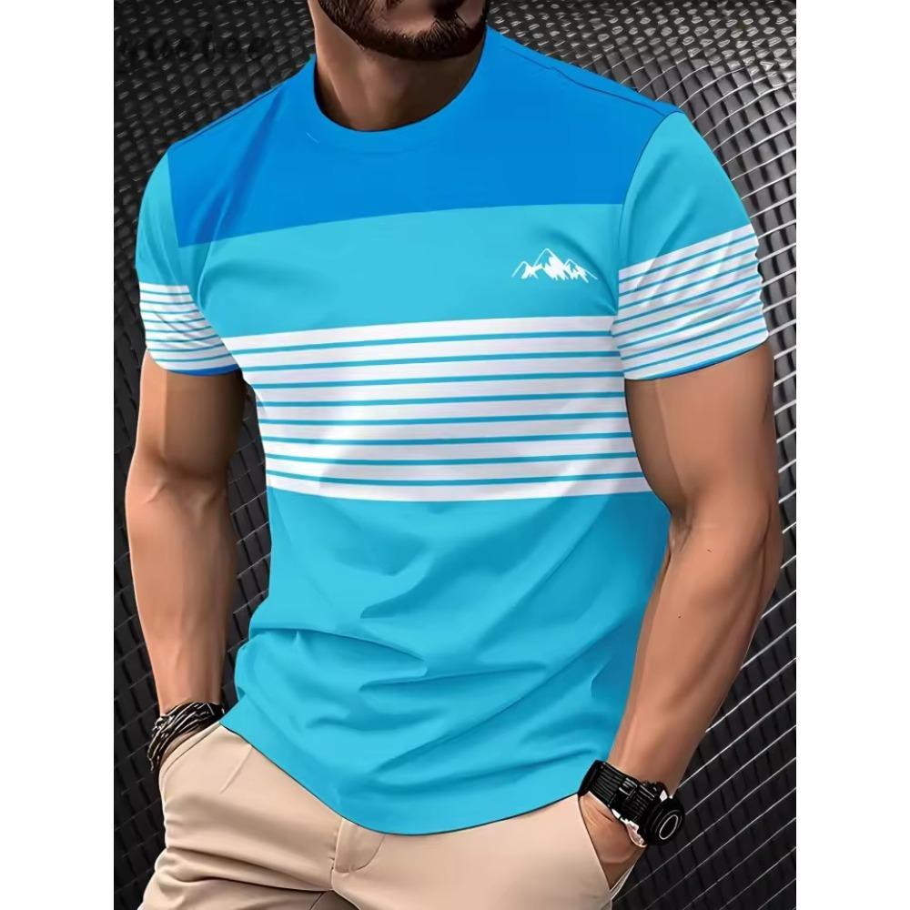 Colorful Striped Small Icon Simple Fashionable Comfortable Soft Breathable Large Loose Casual Short Sleeved Men's T-shirt