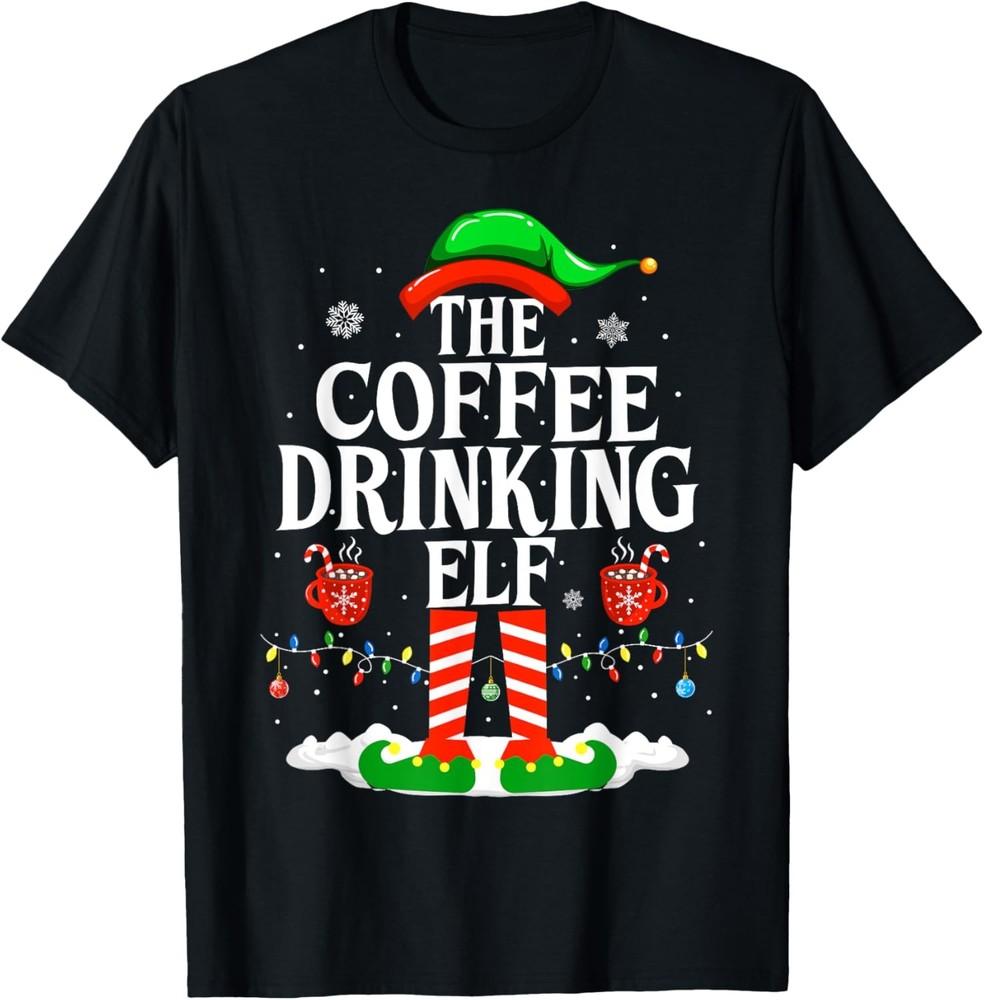 The Coffee Drinking Elf Funny Family Christmas Coffee T-Shirt Unisex T-Shirt