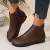 Women's Flat Soled Side Zip Ankle Boots Leather Stylish Retro Round Toe Soft Leather Ankle Boots. Womens Boots Leather Lace up