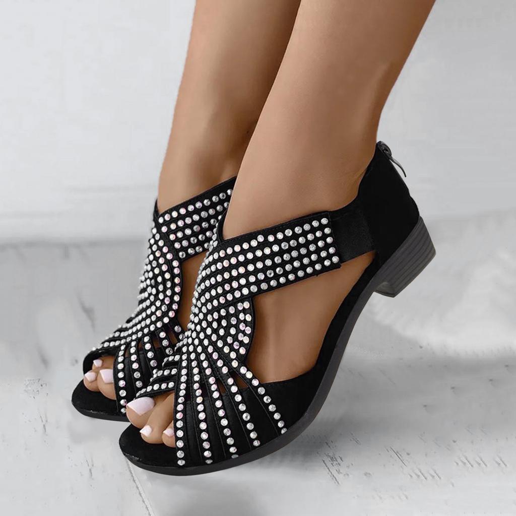 Fit Flops Sandals For Women Ladies Fashion Summer Retro Suede Rhinestone Decoration Open Toe Back Zipper Thick Zapatos De Mujer