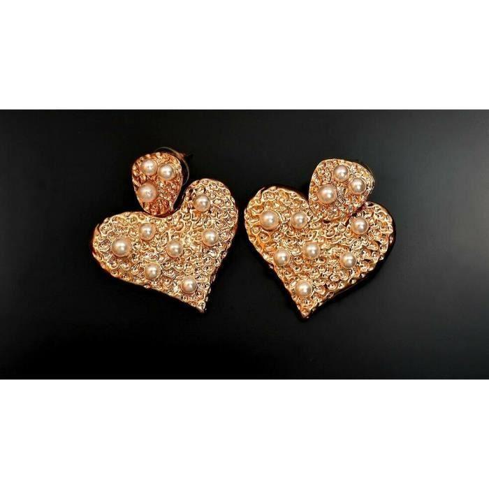Boucles d'oreilles fantaisie Cœur et Perles