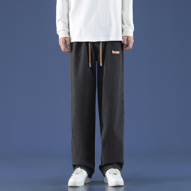 Calças Jeans Largas Casuais Elásticas na Cintura para Homem Streetwear Calças Retas Primavera Outono