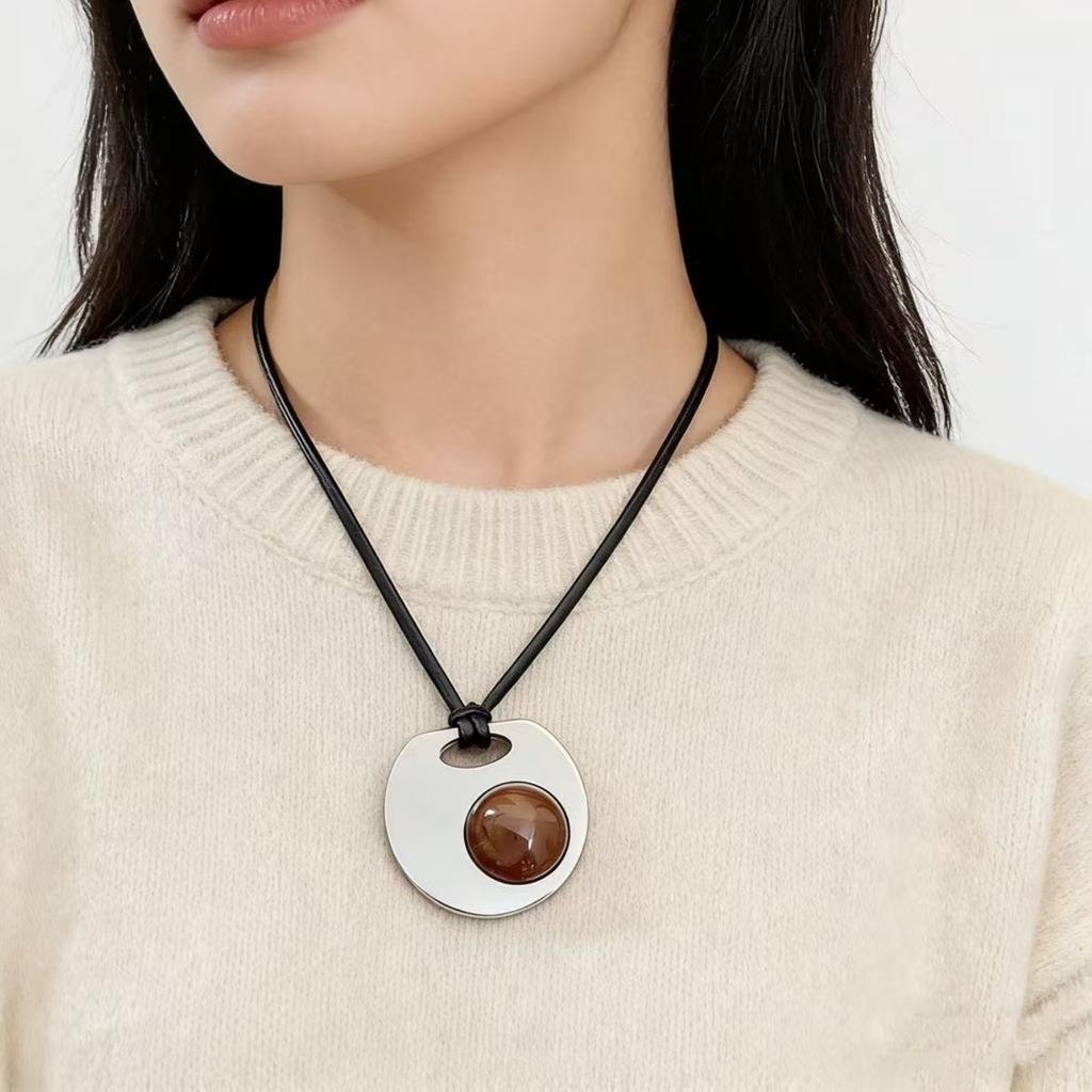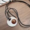Niche Design Leather Rope Sweater Chain Long Titanium Steel Texture Disc Necklace Tide