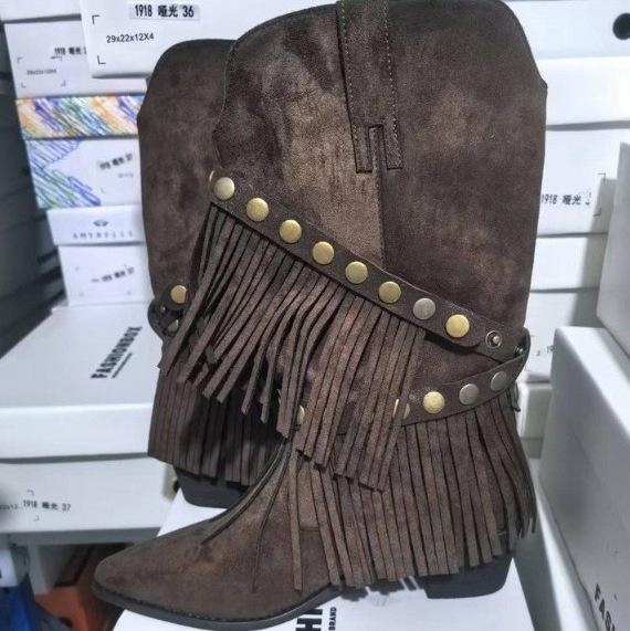 Maillard western cowboy boots retro slim boots fringed wasteland wind pointed thick heel Martin boots