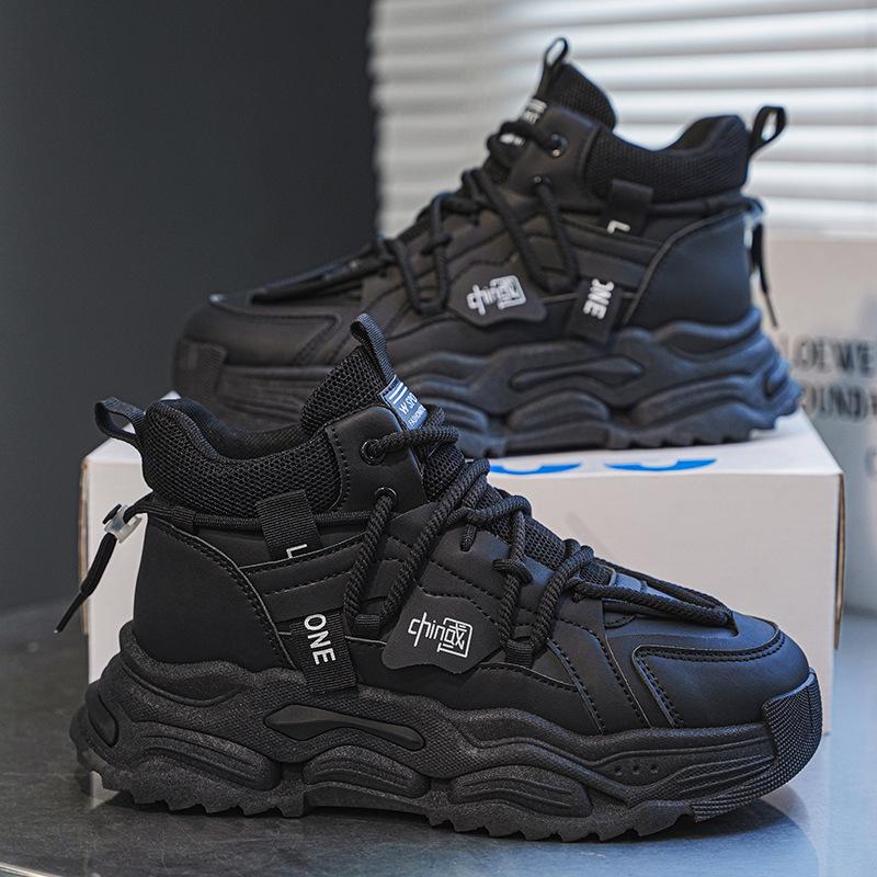 High-top winter new niche original sports and leisure students thick-soled heightening leather dad shoes