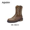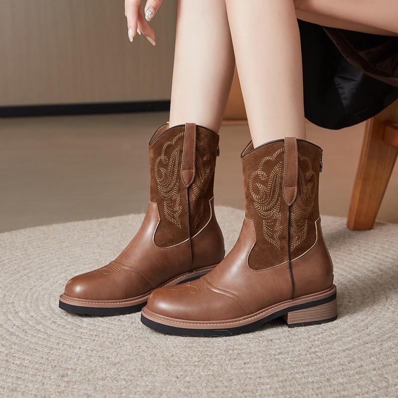Ethnic style western cowboy boots new autumn and winter Maillard brown medium tube Martin boots