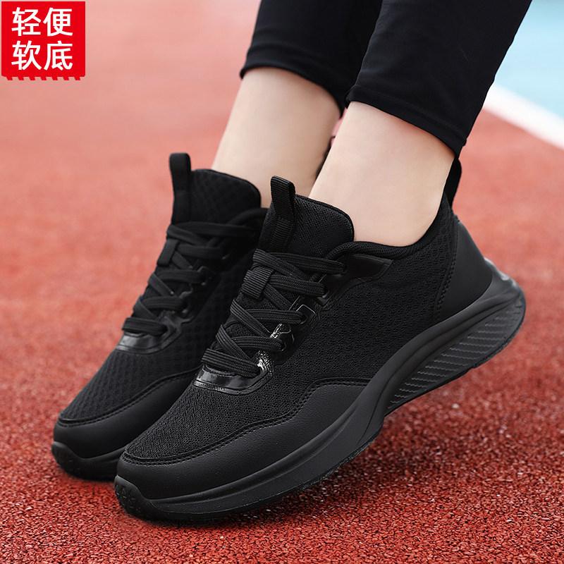 New shoes pure black mesh sneakers ultra-light soft-soled running shoes large size non-slip mother shoes