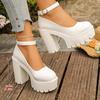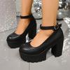 Sapatos Mary Jane Pretos de Salto Super Alto Feminino Tamanho Grande 42 Plataforma Grossa Saltos Agulha Femininos Fivela no Tornozelo Festa Casamento Sapatos de Salto Alto