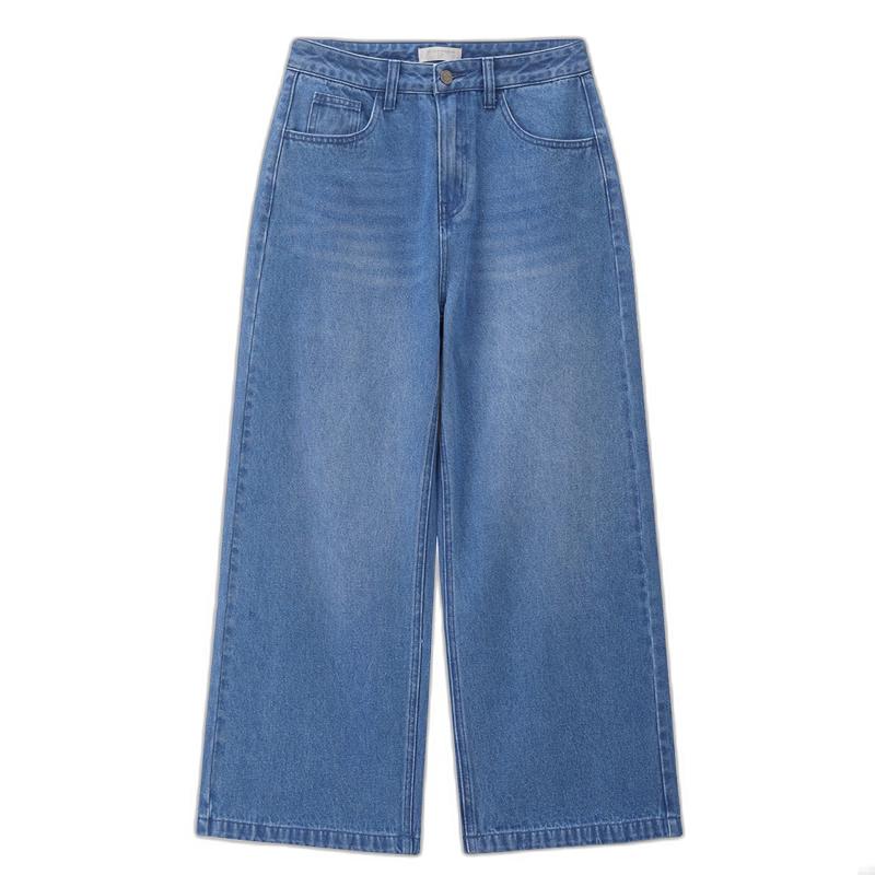 Giordano Women's Washed Mid-Waist Cropped Wide-Leg Jeans