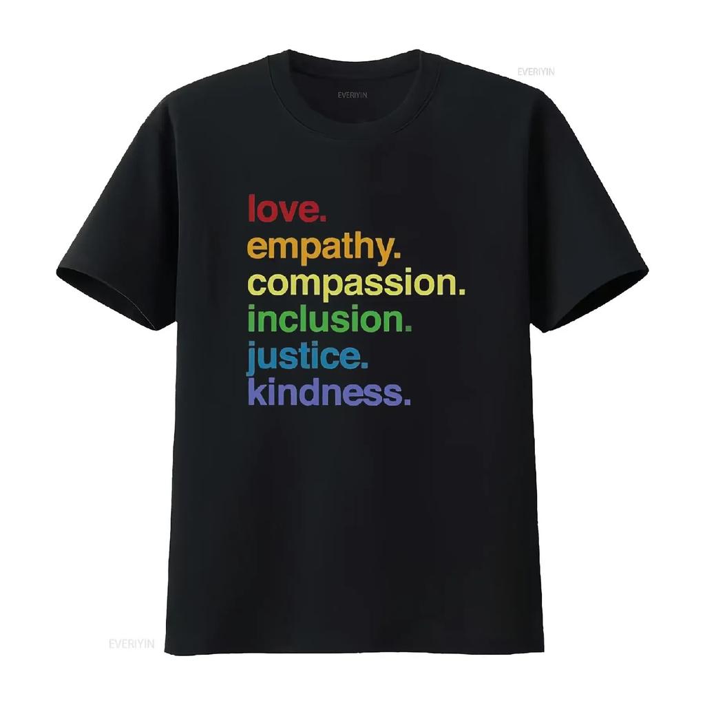 Kindness is Love Empathy Compassion Inclusion Justice T Shirt Rainbow Pride LGBTQ vintage Washed Top For Everyday Wear graphic