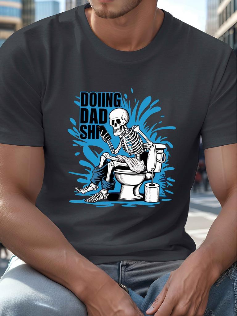 Skeleton Doing Dad Shit Graphic Tee Men Casual Short Sleeve Cotton TShirt Summer Comfort