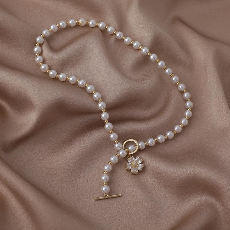 Zircon Flower Pearl Necklace Niche Design Sense 2025 Clavicle Chain Summer Versatile OT Buckle Accessories