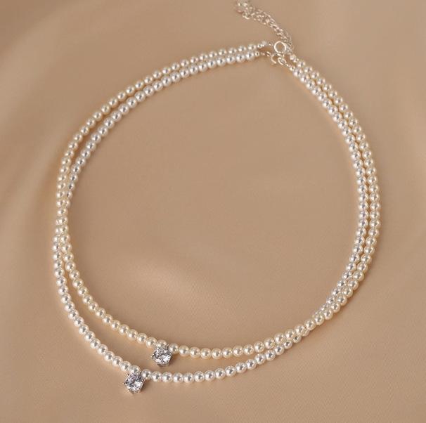 Shijia Zhengyuan Strong Light Pearl Necklace French Zircon Clavicle Chain Versatile Necklace