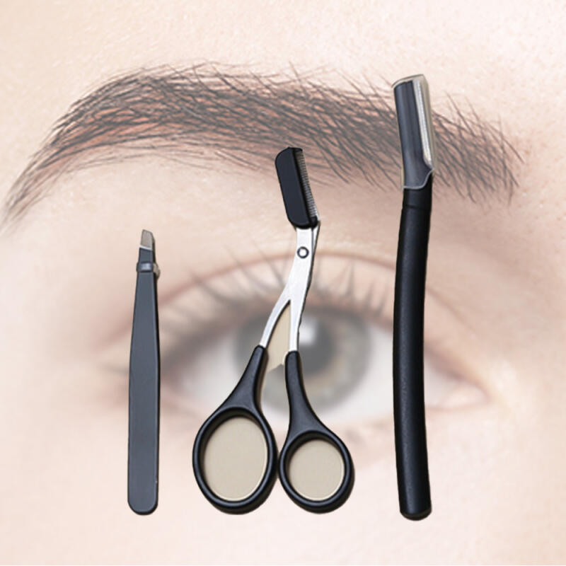 Kit de aparar sobrancelhas, aparo de sobrancelhas para autogerenciamento, faca de aparar sobrancelhas, conjunto de 3 peças