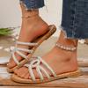 Womens Flat Sandals Slippers Comfortable Flip Flops Slide Sandal Summer Beach Shoes With Rhinestones Decoration Women Sandalias
