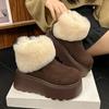New Winter Chunky Platform Flats Women Fur Snow Boots Concise Height Increase Shoes Ladies Dress Keep Warm Cotton Short Booties