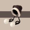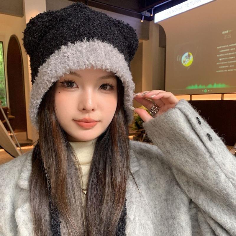Autumn And Winter Color Matching Bear Ear Strap Lei Feng Hat For Women Korean Cute Warm Ear Protection Knitted Wool Hat