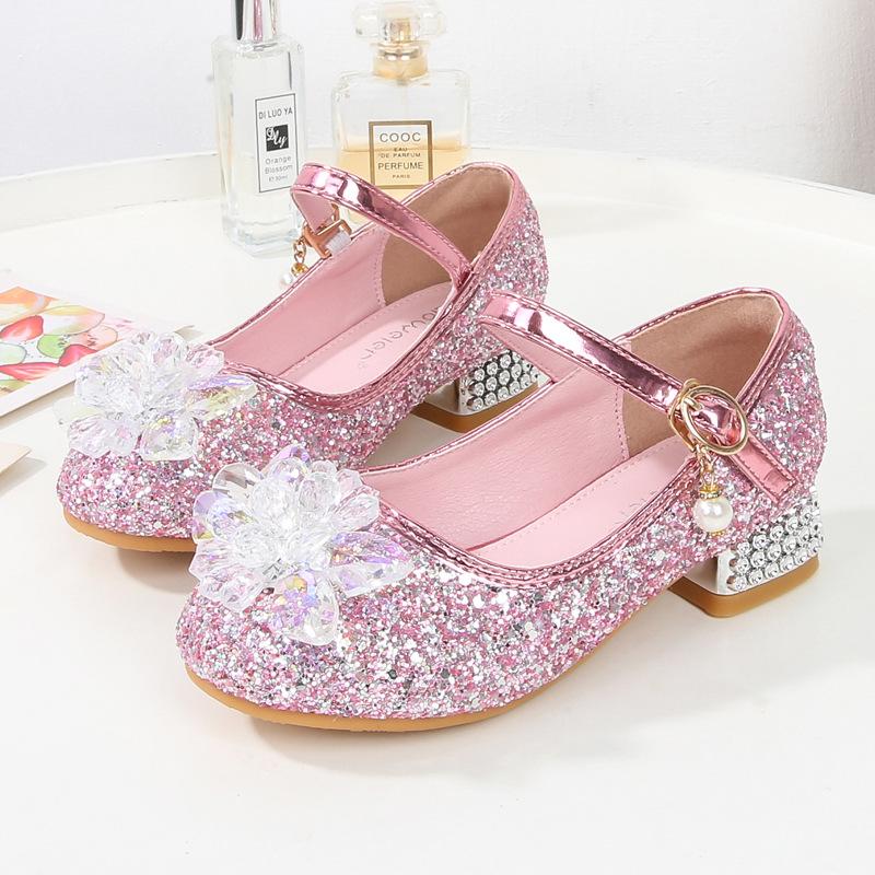 Children's high-heeled crystal shoes Girls' single shoes Little girl Princess Elsa shoes Baby classmate sequined sparkling leather shoes