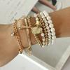 Korean version of multi-element Eiffel Tower pearl retro bracelet, coin six-piece jewelry multi-layer elastic bracelet