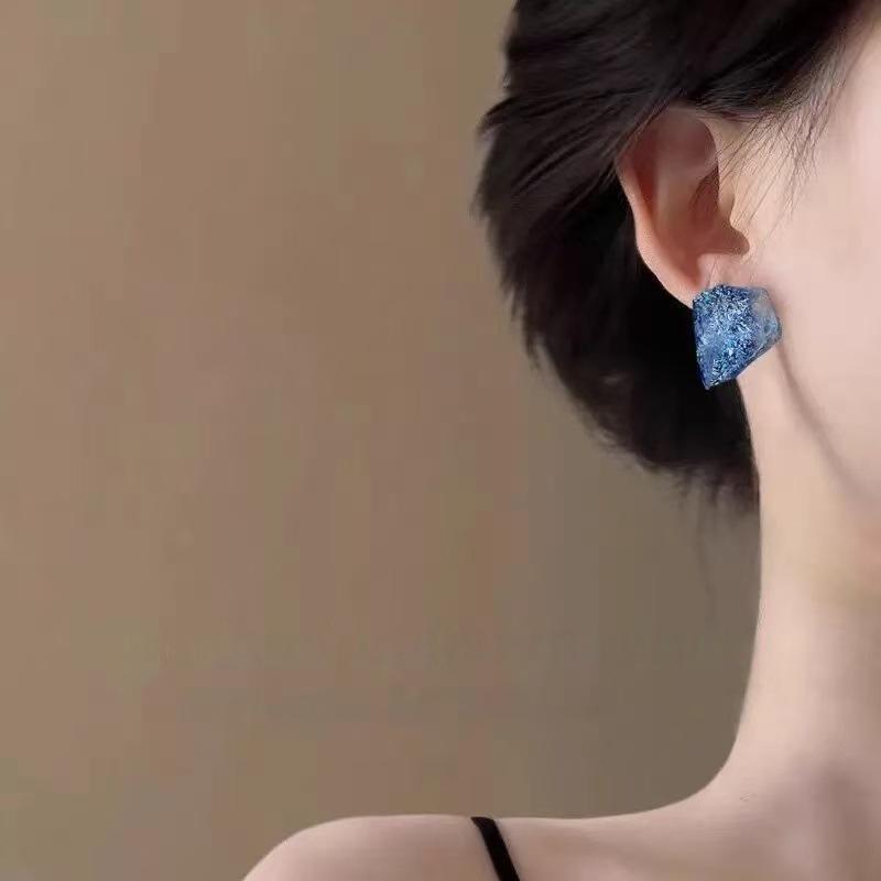 Brincos Irregulares de Cristal de Gelo Azul Para Mulheres Brincos Geométricos Tridimensionais